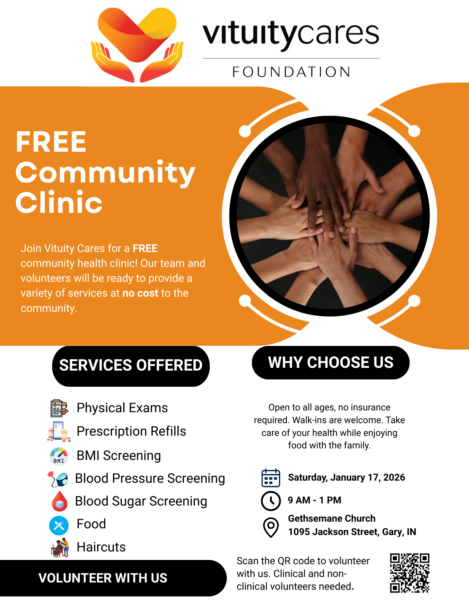 January 17, 2026(2 events) 7:00 am: Food Distribution at St Anne’s - Gary – 9:00 am: Vituity Cares Community Health Clinic - Gary. – |